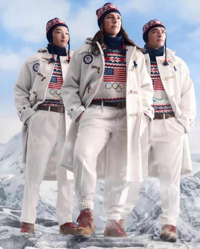 Açılış töreninde sporcuların üzerinde yer alacak kombin, markanın klasik çizgisini modern yorumlarla buluşturuyor. Koleksiyonda, beyaz uzun yün kaban, miras tasarımlarından esinlenen ahşap düğmeler, kollarda ikonik Amerikan bayrağı detayı, kalın yün boğazlı kazak, özel dikim yün pantolon bulunuyor.
