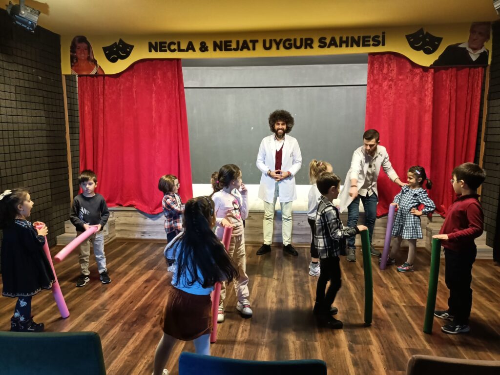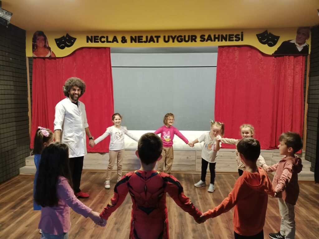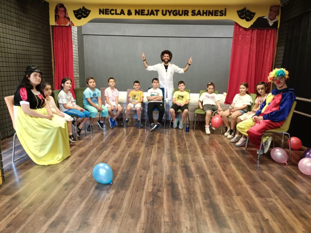 Uzman eğitimcilerimiz eşliğinde tiyatro atölyesi eğitimlerini Temel oyunculuk, Yaratıcı Drama Eğitimi, Diksiyon eğitimi, Kamera önü oyunculuk eğitimi, Ses nefes açma eğitimi, Konsantrasyon geliştirme hareketleri, Özgüven Koordinasyon geliştirme eğitimleri veriyoruz. Ayrıca masal etkinlikleri düzenliyoruz.